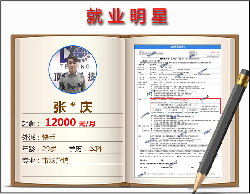 顶测科技的软件测试课程从企业需求出发,基础结合真实项目授课,学完后与企业无缝接轨,所以才能做到保薪就业(不上岗 or 不高薪,无任何费用)。